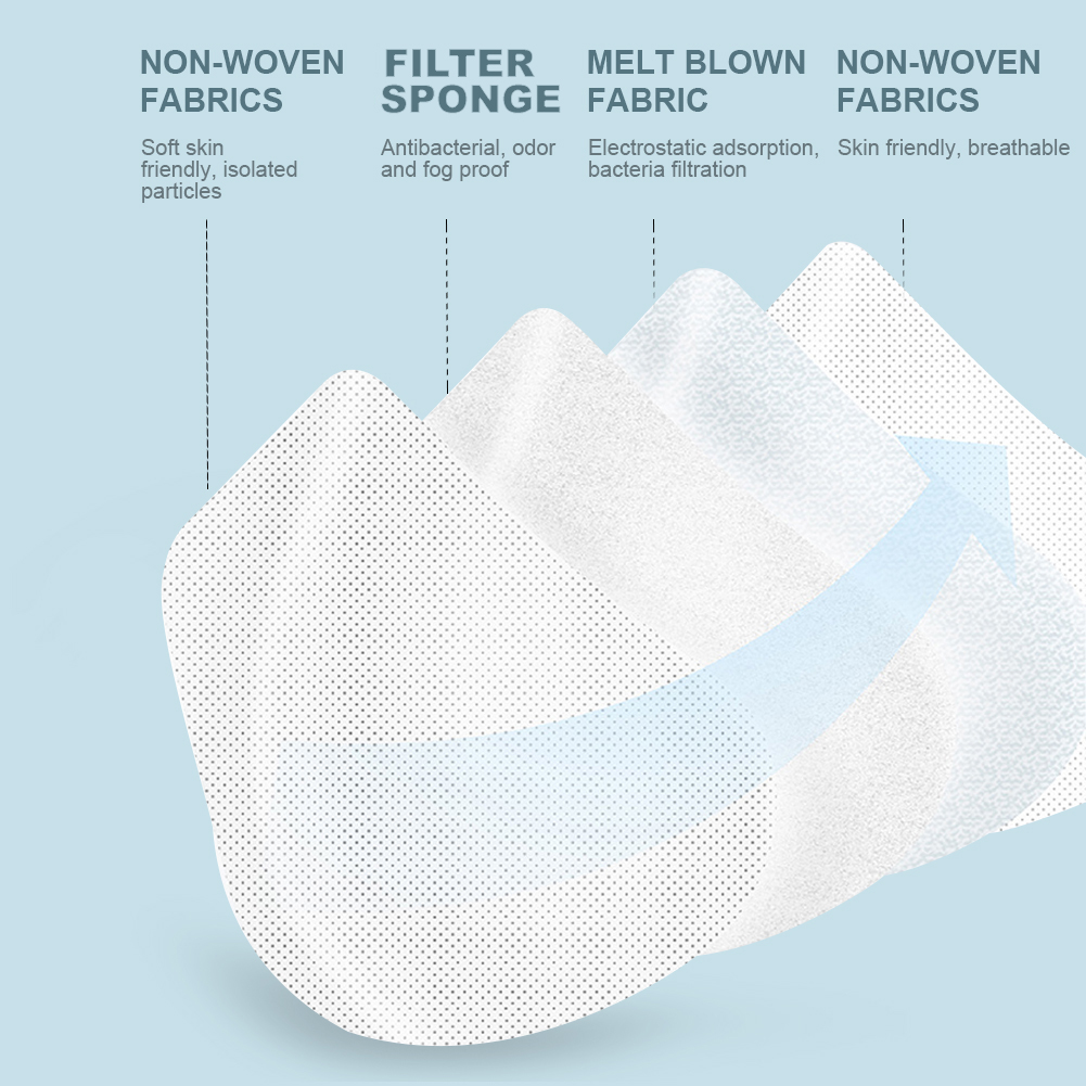 4) High-quality elastic ear-loop with no pressures on the ears,makes it comfortable to wear for a